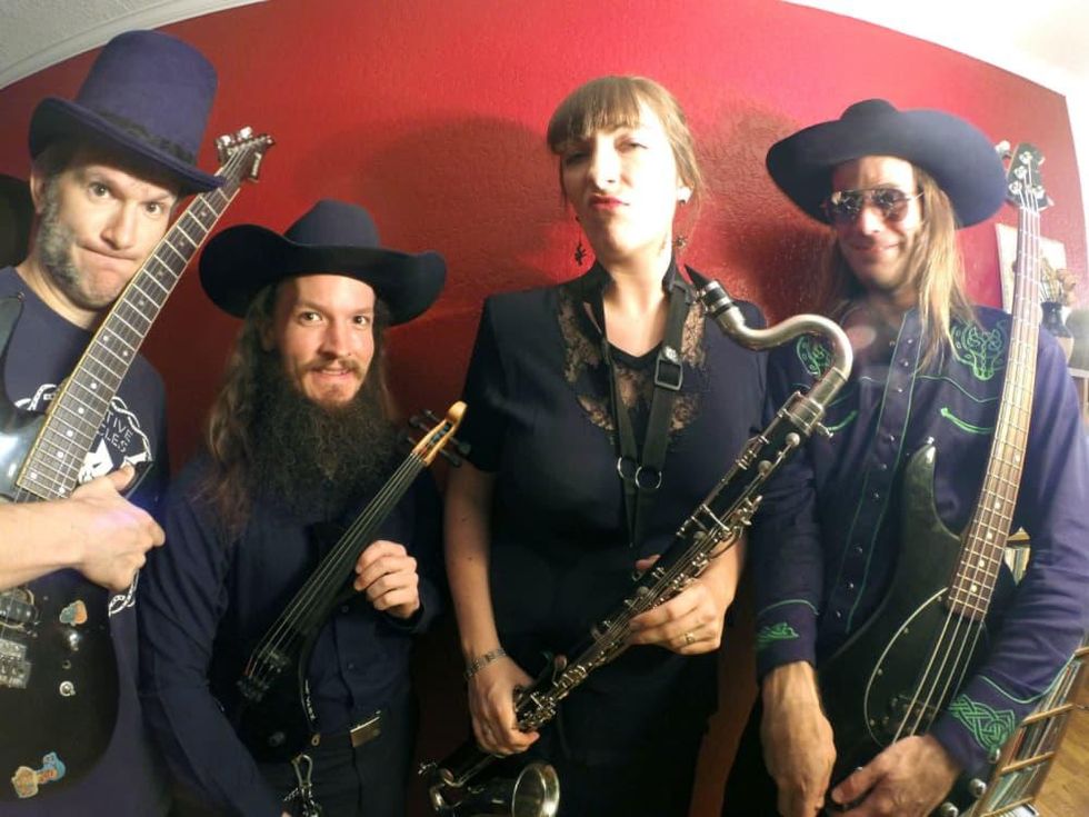 The Invincible Czars’ soundtrack is minimal, spooky and even includes audience participation. Line-up features Leila Henley (winds, vocals, loops, percussion), Josh Robins (guitar, sound effects, percussion), Phil Davidson (violin, organ) and Hen3ry Q Vines (bass guitar). The band has incorporated music from the classical realm into the score, arranging Eric Satie’s Gnossienne No. 1 and No. 5 alongside an eerily beautiful but obscure Debussy piece entitled Footsteps in the Snow. Just like their music, The Invincible Czars’ wardrobe is meant to complement the film, and they encourage audiences to do the same.